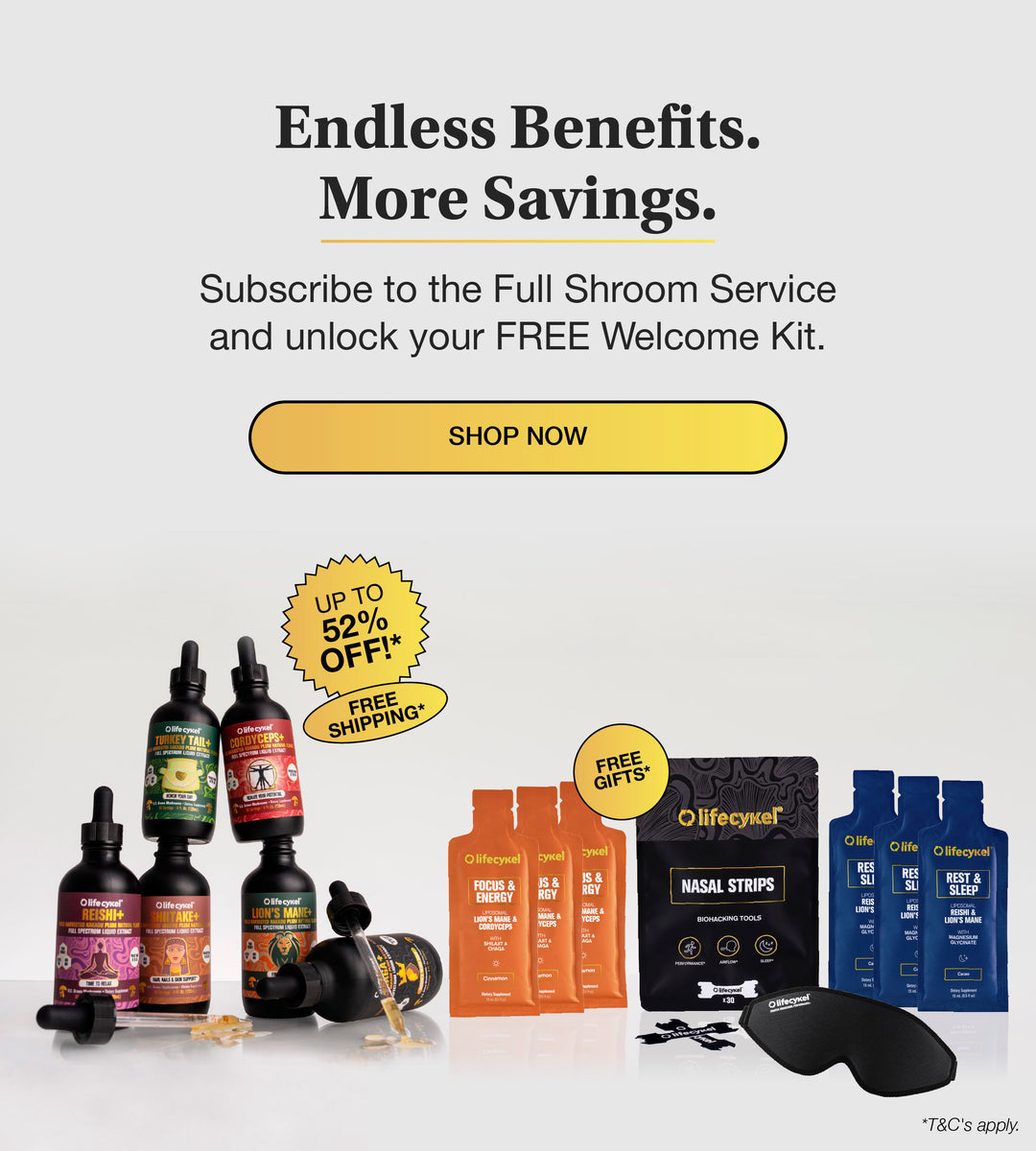 Subscribe to the Full Shroom Service today and unlock your FREE Welcome Kit.* Think, feel & perform at your best - every day.